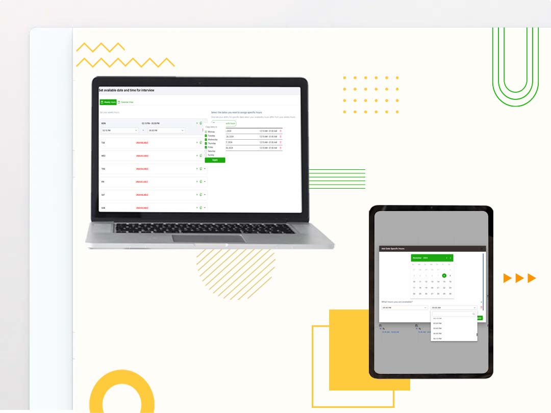 Connect calendars and let Hiperbrains find the best time slots for interviews.